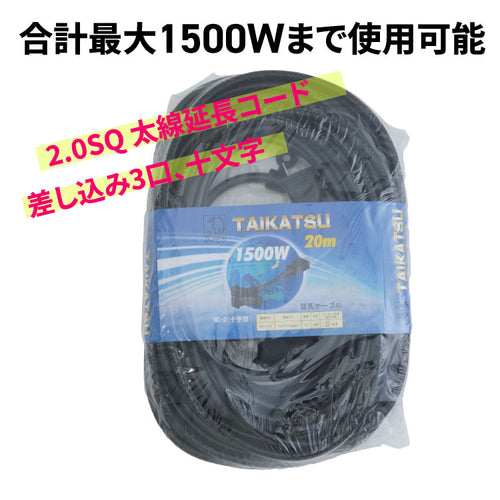 電線にVCTF2.0mm2×2芯を採用しているので、合計最大1500Wまで使用可能です。