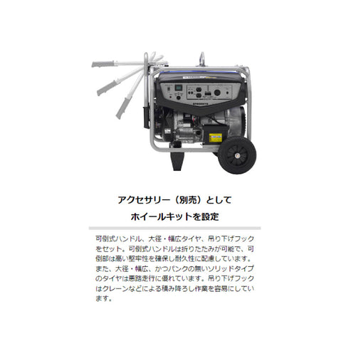 可倒式ハンドル、大径・幅広タイヤ、吊り下げフックをセット。可倒式ハンドルは折りたたみが可能で、可倒部は高い堅牢性を確保し耐久性に配慮しています。また、大径・幅広、かつパンクの無いソリッドタイプのタイヤは悪路走行に優れています。吊り下げフックはクレーンなどによる積み降ろし作業を容易にしています。