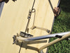 2枚の天板の脚パイプ1本分のスペースに、4本の脚が絶妙なバランスで収まっています。天板を開くとシンクロして脚も飛び出すスノーピークオリジナルの画期的なシステムです。