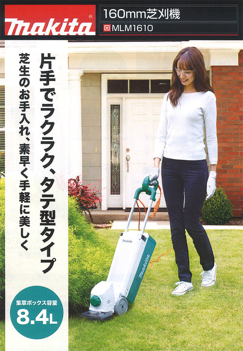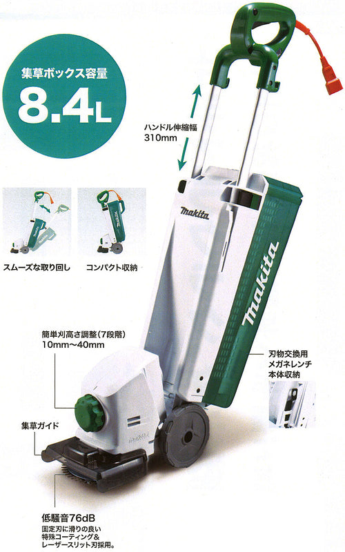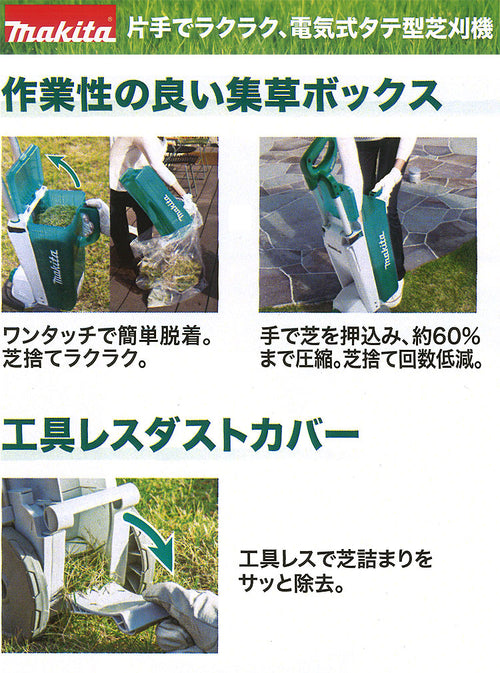 片手でラクラク、電気式タテ型芝刈機●作業性の良い集草ボックス