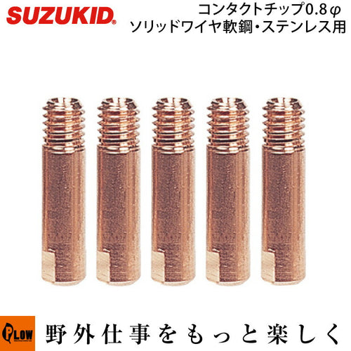 半自動溶接機アーキュリー120/160専用の、ソリッドワイヤ軟鋼/ステンレス用コンタクトチップ 0.8φ(5個入)です。