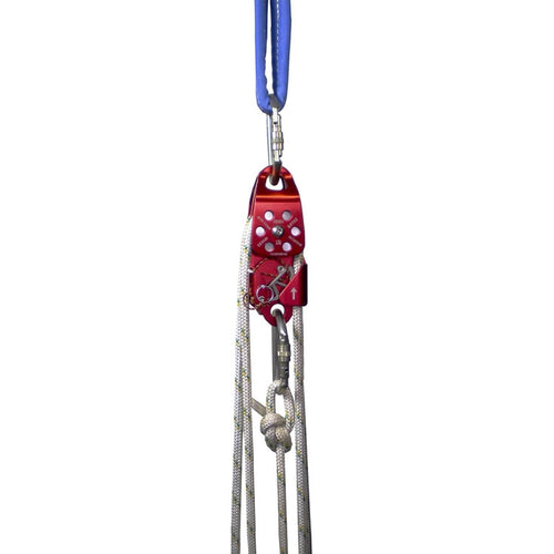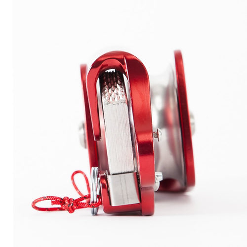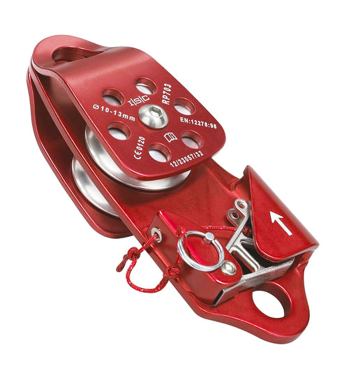 ダブルセルフロックプーリーは、特に救助作業用に設計されました。それ以外にも林業、狩猟などで使用することができます。2つのシーブと、ロープを一方向に通過させ、反対方向にブロックするブレーキカムシステムを備えています。スプリング式カムは、リリースコードを引っ張って外すことができます。直径62 mmのアルミシーブは、自己潤滑ブッシングとステンレススチールアクスルに取り付けられています。スイング側とメインプレートも陽極酸化アルミニウム製です。