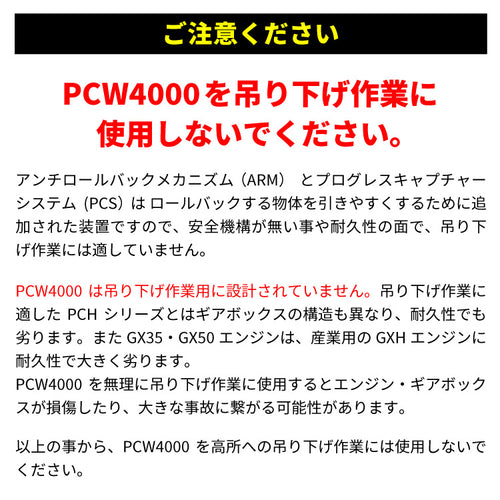 ホンダGX50エンジン搭載!安全で力強く使いやすいロープウインチ PCW4000