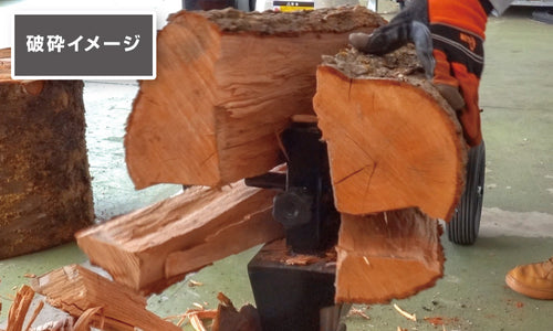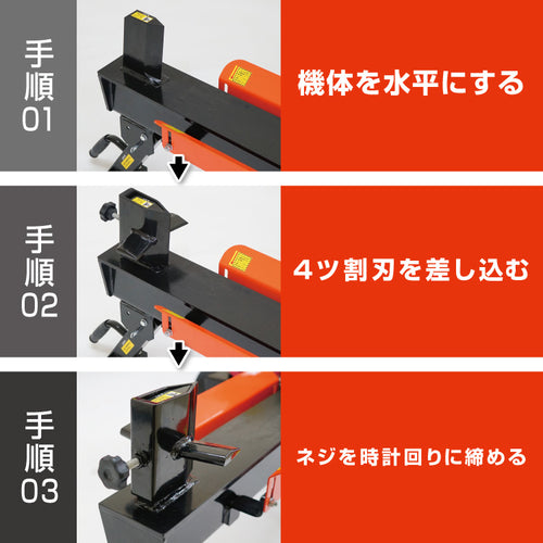 (※四つ割り使用時は通常時より抵抗が大きくなります。固く乾燥した木材や固い材質の木材、大きな丸太には使用しないでください。無理な抵抗をかけると本体に大きな負担をかけ、場合により損傷する可能性があります。)
